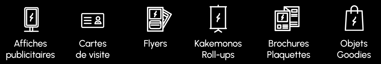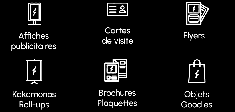 Dans l’ère du digital et du tout dématérialisé, les visuels print ont encore une importance cruciale. Affichages publicitaires, habillages de stands ou d’événements avec des kakemonos, cartes de visite, goodies, flyers… Faites rayonner votre marque partout et impactez le monde qui vous entoure !